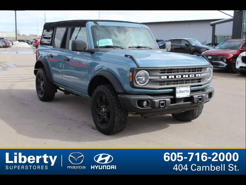 Experience adventure in this striking BLUE 2023 Ford Bronco Black Diamond 4x4 SUV. Built for off-road excitement and daily comfort, it features the sought-after EcoBoost 2.3L Turbo I4 engine paired with a 7-speed manual transmission and off-road tuned suspension. Take on any terrain with electronic hi-lo 4WD, rear and front skid plates, hill descent control, and rear locking differential. Stay connected on the road with SYNC infotainment, wireless Apple CarPlay and Android Auto, SiriusXM satellite radio, and FordPass Connect with Wi-Fi hotspot capability. Enjoy modern conveniences like push-button start, keyless entry, power windows, and heated side mirrors. Safety comes standard with front automatic emergency braking, pedestrian detection, lane keeping assist, rearview camera, and a host of airbags. The Black Diamond trim gives you rugged vinyl upholstery, rubberized flooring, and easy-clean surfaces, perfect for outdoor enthusiasts. Ready to explore? Schedule your test drive today and see why the Bronco Black Diamond stands out as the ultimate SUV for both city and trail.